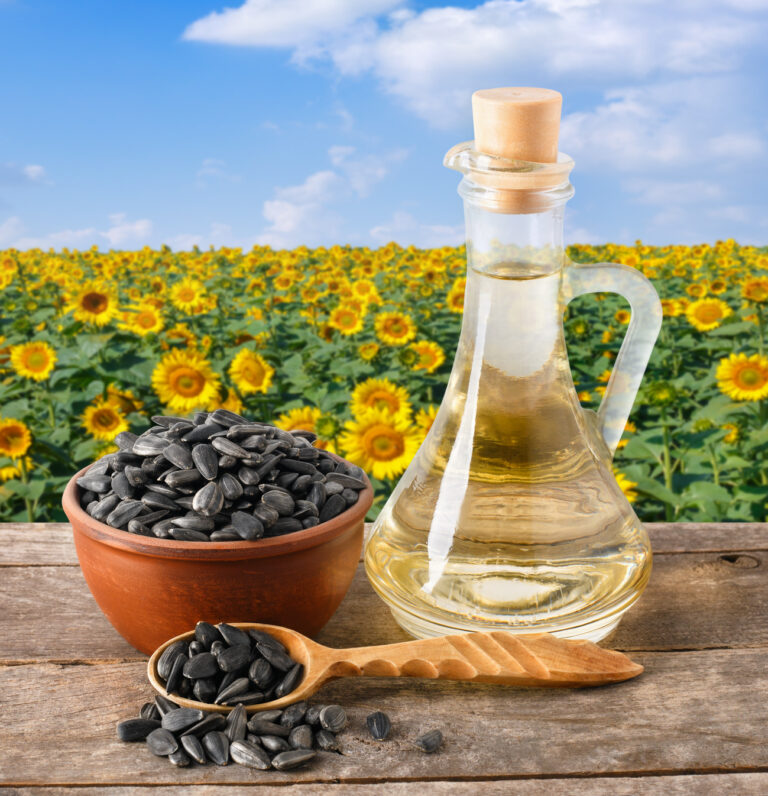 Sunflower oil is obtained from the seeds of the sunflower, the annual plant Helianthus annus of the compositac family. Sunflower oil belongs to fatty seed oils. It consists of a complex mixture of various triglycerides and a certain amount of free fatty acids and various non-fatty substances.